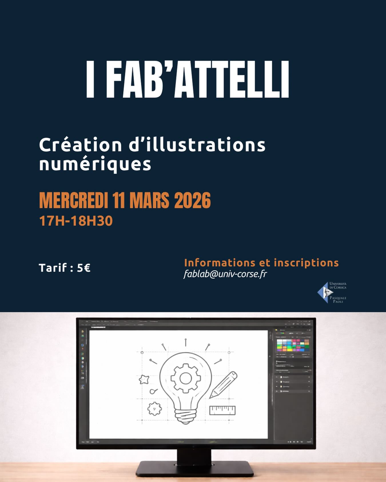 Tu veux découvrir l'illustration numérique ? Le FabLab de l'Université de Corse propose un atelier d'initiation pour apprendre à créer tes premières illustrations sur ordinateur avec un logiciel dédié.