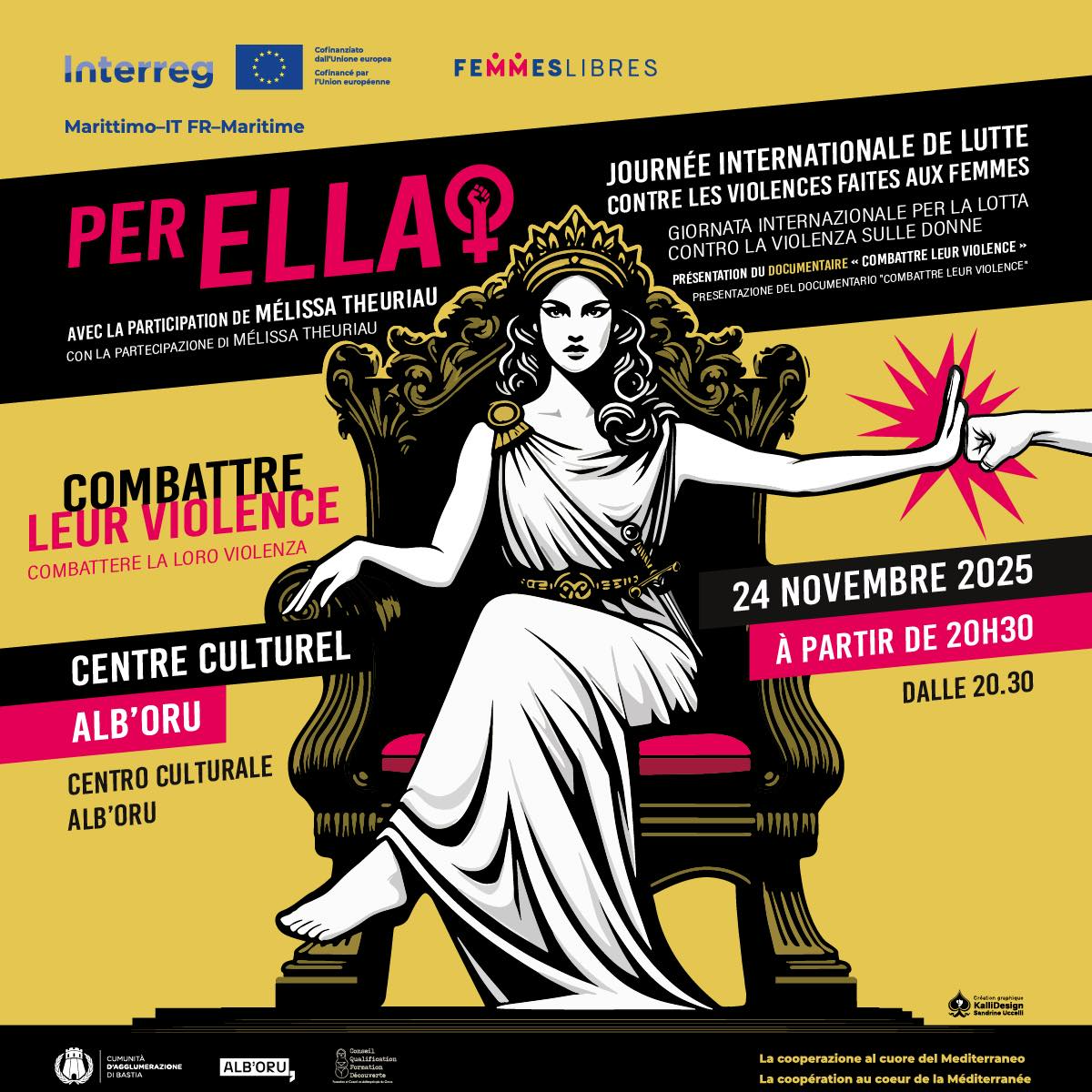 🎥 𝗟𝘂𝗻𝗱𝗶 𝟮𝟰 𝗻𝗼𝘃𝗲𝗺𝗯𝗿𝗲 𝗮̀ 𝟮𝟬𝗵𝟯𝟬 au Centre Culturel de l'Alb'Oru retrouvez le documentaire " combattre leur violence " 𝗲𝗻 𝗽𝗿𝗲́𝘀𝗲𝗻𝗰𝗲 𝗱𝗲 𝘀𝗮 𝗽𝗿𝗼𝗱𝘂𝗰𝘁𝗿𝗶𝗰𝗲 𝗠𝗲́𝗹𝗶𝘀𝘀𝗮 𝗧𝗵𝗲𝘂𝗿𝗶𝗮𝘂. La projection sera suivie d'une table ronde et d'un échange avec le public.